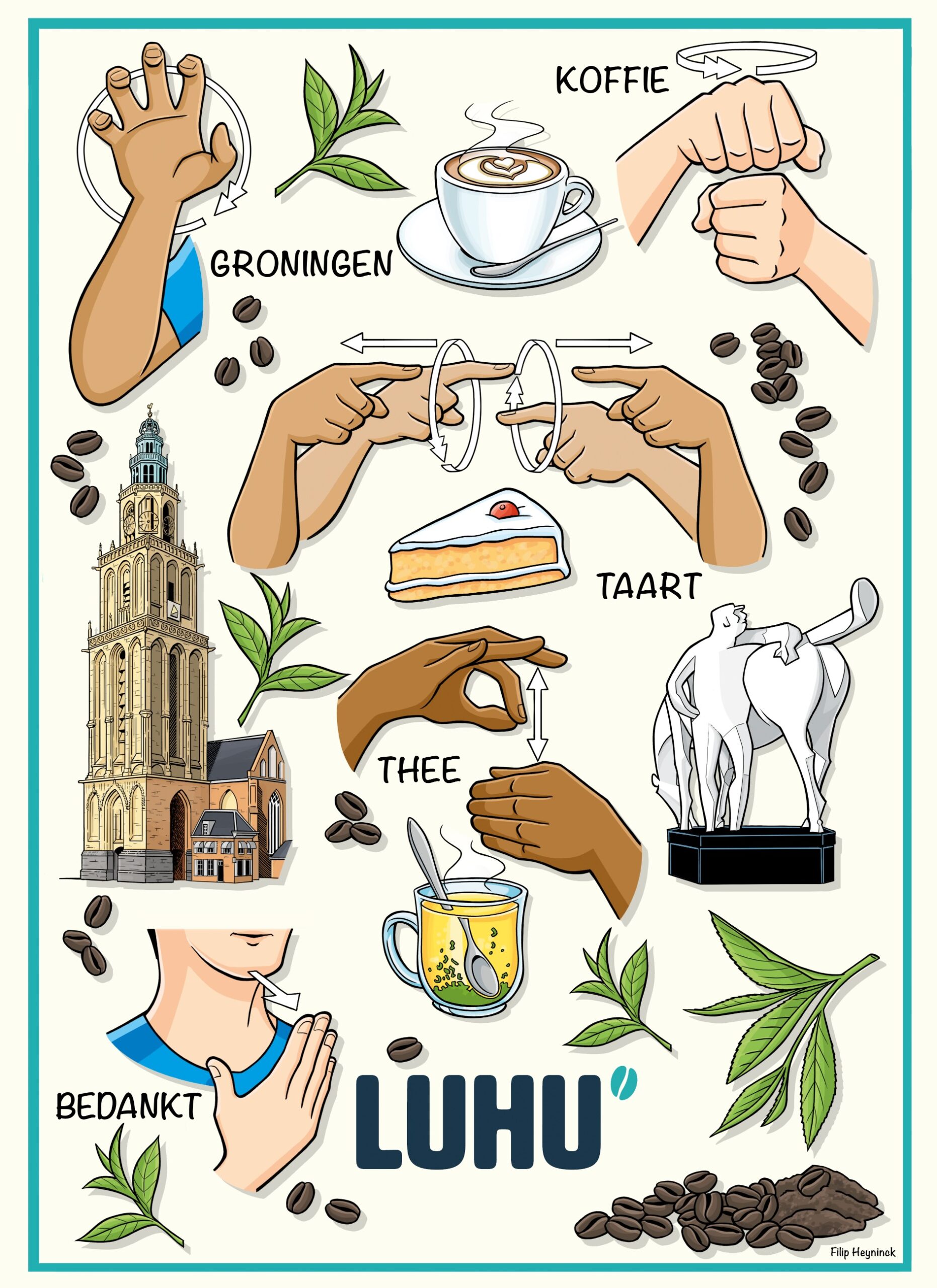 Poster van Luhu met verschillende gebaren (inclusief koker)